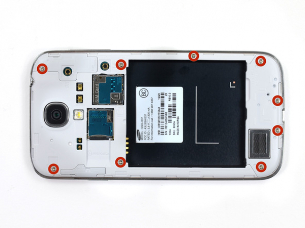 Retire los nueve tornillos Phillips #00 de 4 mm que sujetan el chasis con el conjunto de la pantalla.