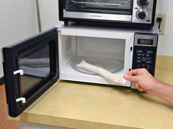 Saque el iOpener del microondas, sujetándolo cuidadosamente por una de sus esquinas.
