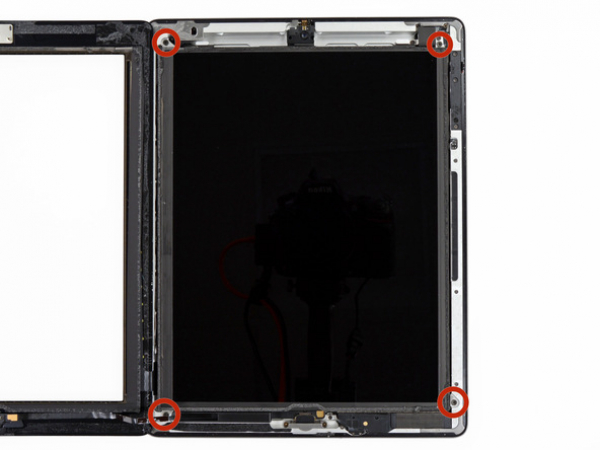 Cuatro tornillos Philips de 2 mm fijan la pantalla LCD al marco de aluminio. Retírelos.