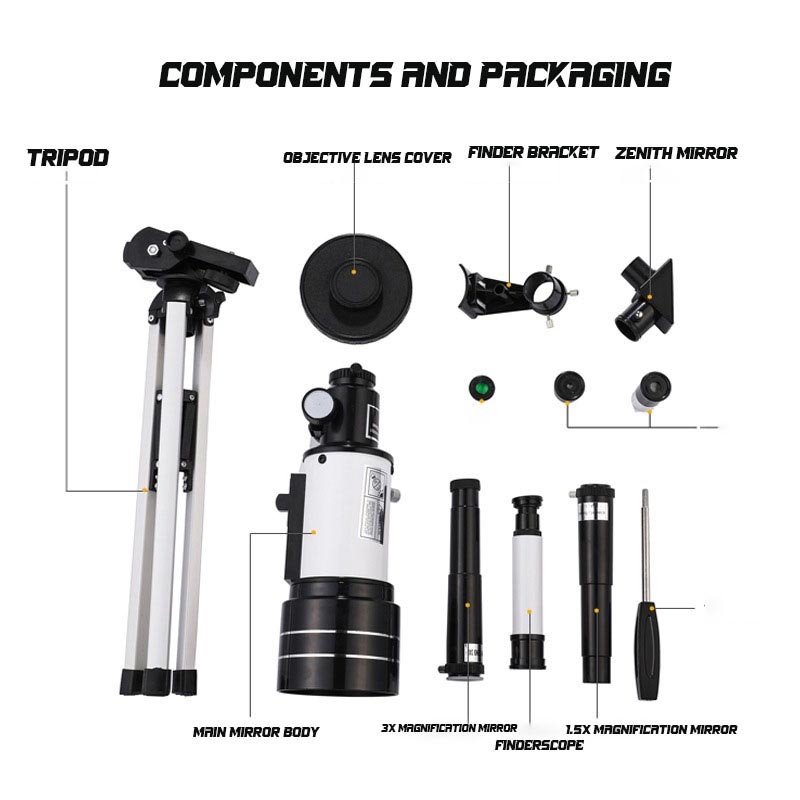 - Trípode estable incluido: Proporciona un soporte fiable e imágenes estables, cruciales para capturar fotos con el teléfono o simplemente disfrutar de una vista clara del cielo.