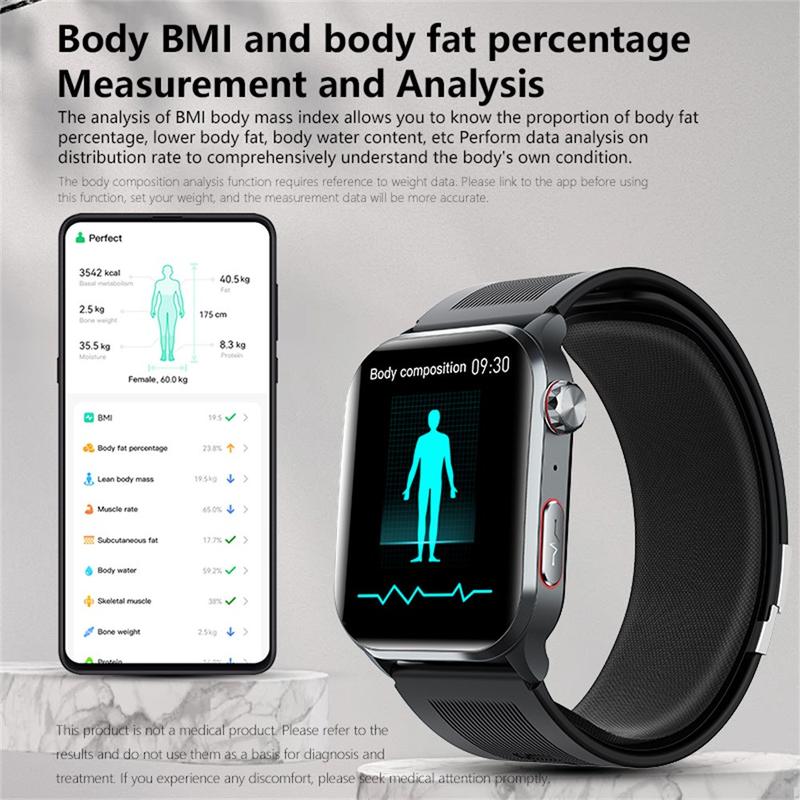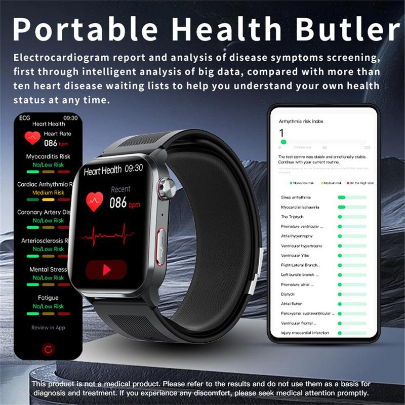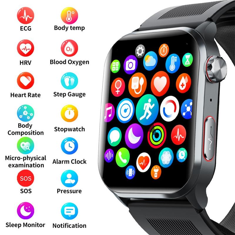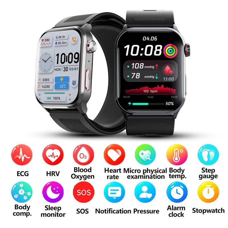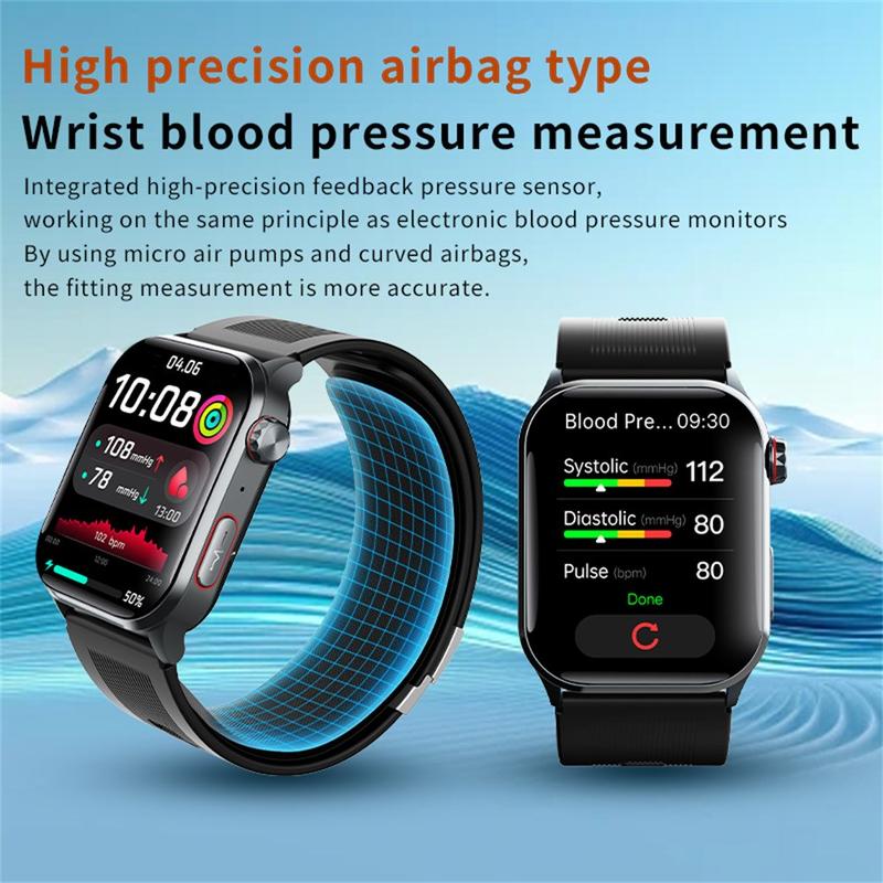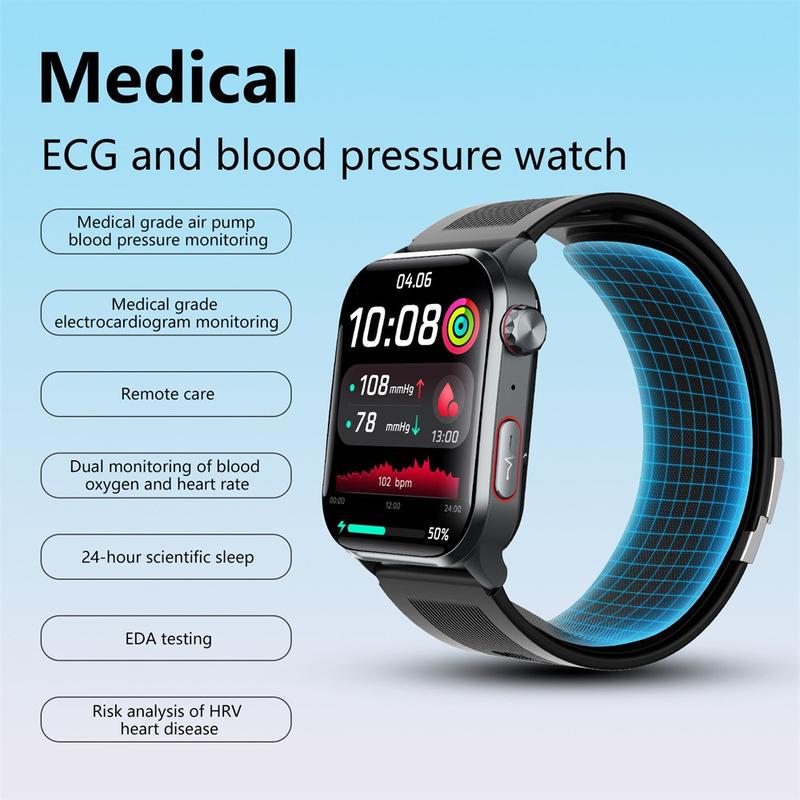 Reloj inteligente F530 con presión arterial con bomba de aire, ECG, frecuencia cardiaca y seguimiento del sueño - Alarma de caída SOS, pantalla IPS de 2,1 pulgadas