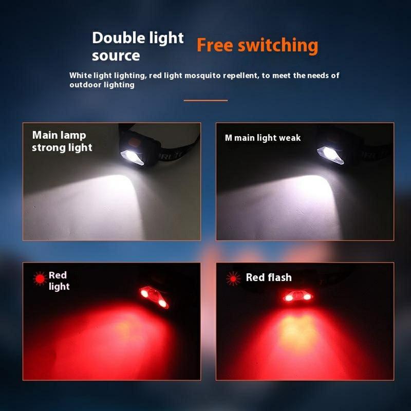 Esta linterna frontal ofrece cuatro modos de iluminación versátiles para adaptarse a diferentes actividades y condiciones: luz blanca intensa, luz blanca débil, luz roja fija y luz roja intermitente. Los modos de luz roja son especialmente útiles para la visibilidad nocturna, la señalización o para preservar la visión nocturna.
