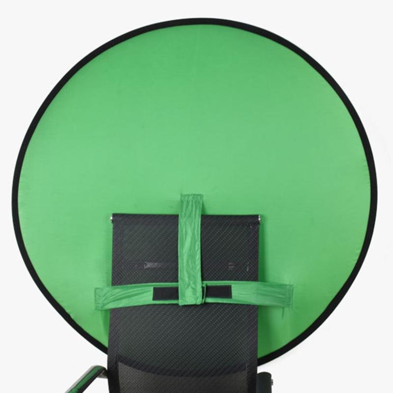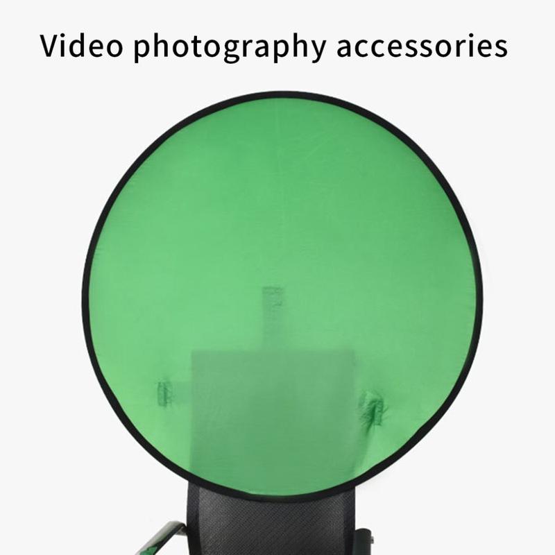 Cree fotos y vídeos de calidad profesional en cualquier lugar con el fondo fotográfico redondo de pantalla verde para silla. Diseñado para ofrecer comodidad y portabilidad, este fondo de 75cm proporciona una superficie limpia y croma ideal para streaming, videollamadas y fotografía, tanto en interiores como en exteriores.