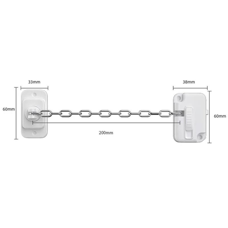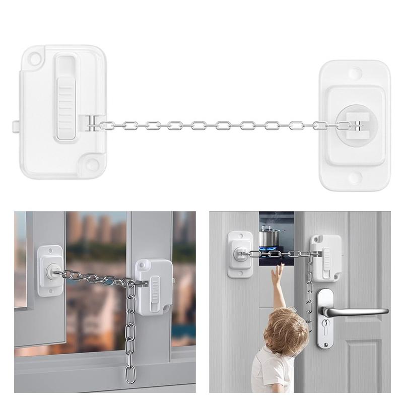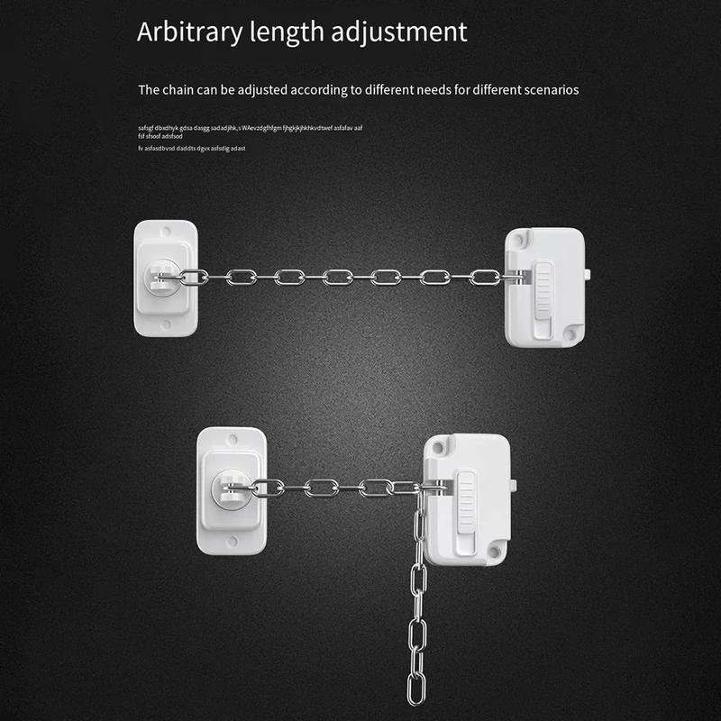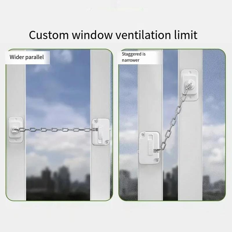 La longitud ajustable de la cadena le permite decidir cuánto puede abrirse una ventana o puerta. Esta característica garantiza un flujo de aire adecuado a la vez que mantiene a los niños y mascotas seguros en el interior, lo que lo convierte en un excelente accesorio de seguridad para casas y apartamentos.