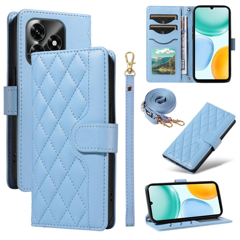 Funda acolchada de lujo con correa para hombro y muñeca para Honor X5c Plus - Funda protectora con estampado de rombos