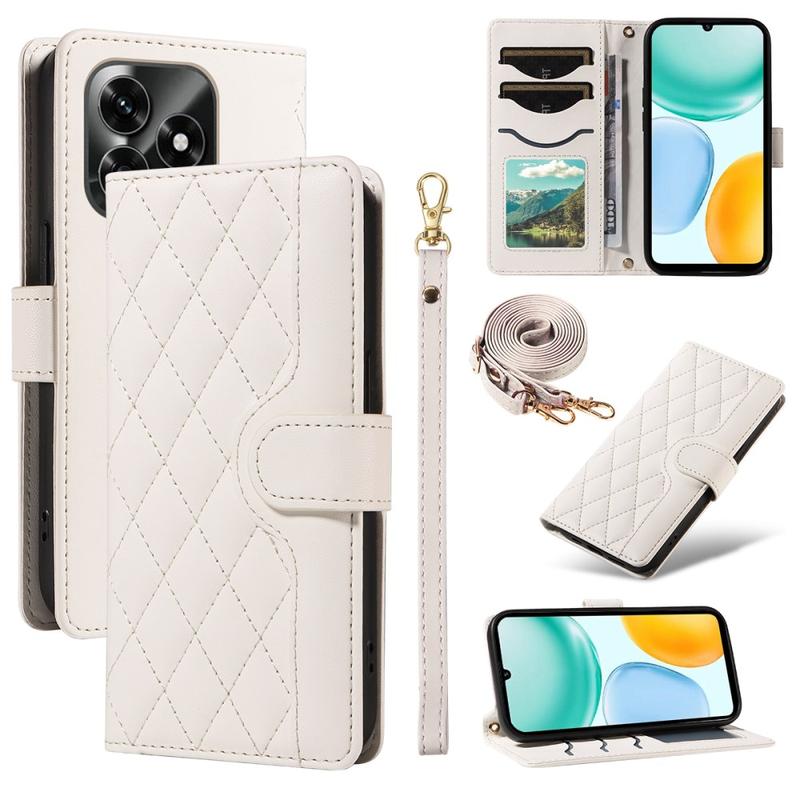 Funda acolchada de lujo con correa para hombro y muñeca para Honor X5c Plus - Funda protectora con estampado de rombos