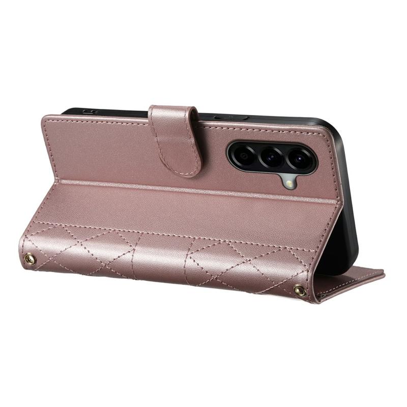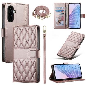 Funda acolchada de lujo con correa para hombro y muñeca para Samsung Galaxy A57 - Funda protectora con estampado de rombos