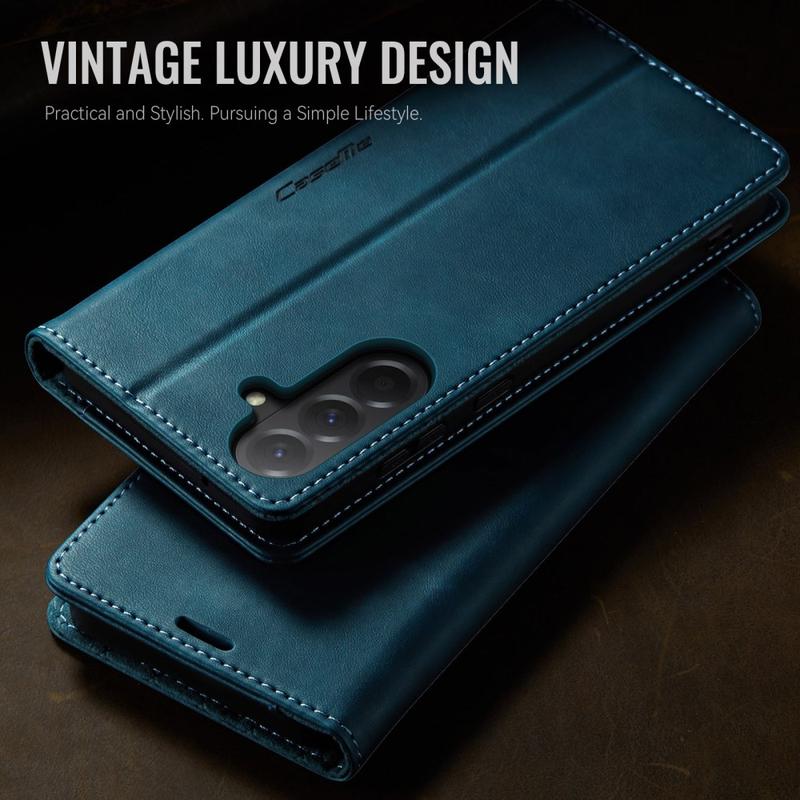 La funda CASEME 033 Series Wallet Case para Samsung Galaxy A57 está fabricada en poliuretano con textura de becerro combinado con TPU, ofreciendo una protección completa contra arañazos, impactos y el desgaste diario, manteniendo un aspecto elegante y de primera calidad.