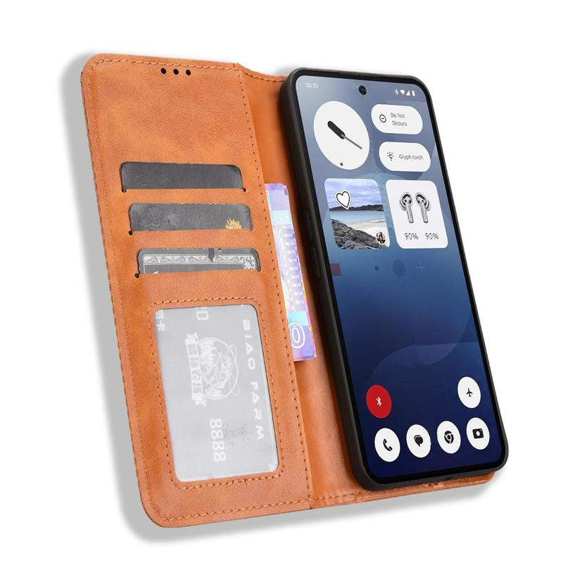 Funda de cartera con cierre magnético para Nothing Phone (3a) - Marrón