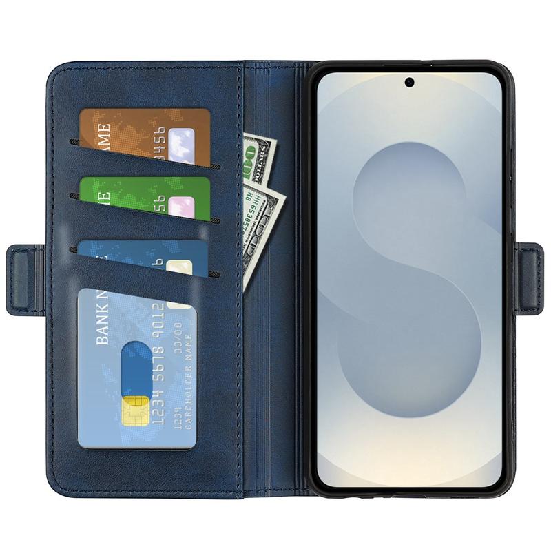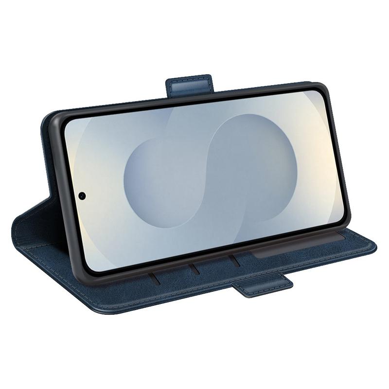 Funda tipo cartera con cierre magnético para Samsung Galaxy S25 Edge - Textura de becerro - Azul
