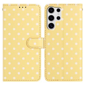 Funda Cartera con Estampado de Lunares para Samsung Galaxy S25 Ultra - Amarillo