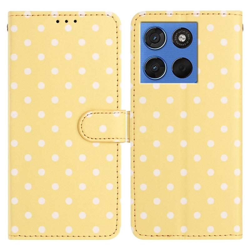 Funda Cartera con Estampado de Lunares para Motorola Moto G77/G67 - Amarillo