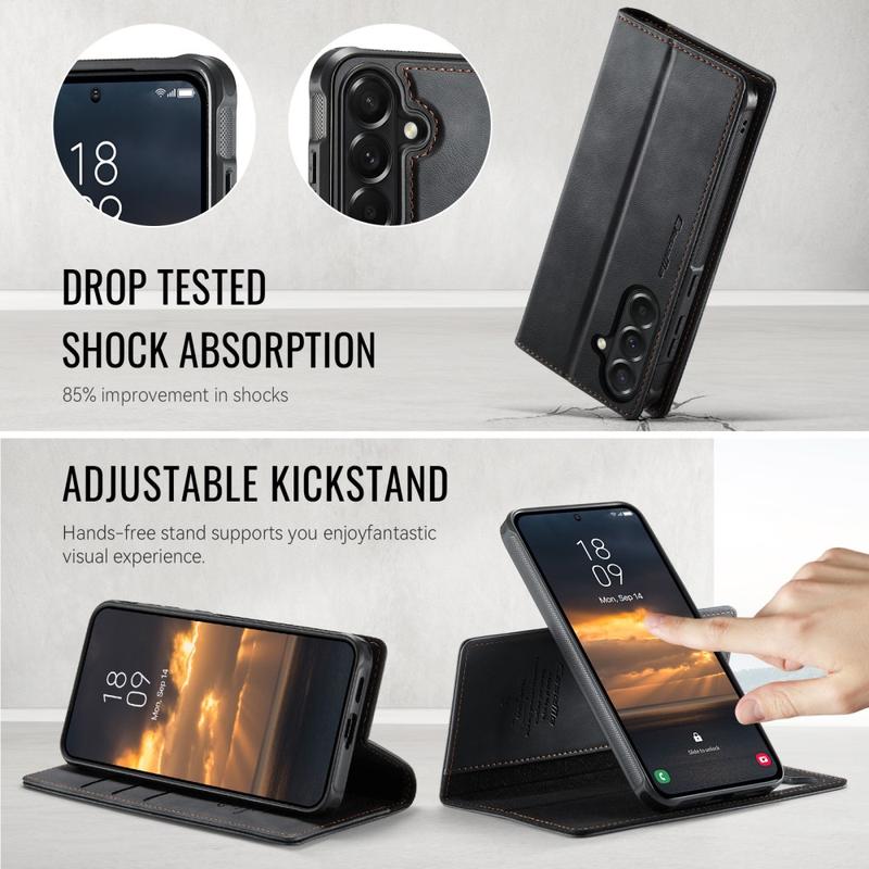 La funda CaseMe C49 Wallet para Samsung Galaxy A57 está fabricada con TPU y poliuretano duraderos, que ofrecen un agarre cómodo y una protección fiable contra golpes, caídas y arañazos cotidianos. En el interior, un forro de microfibra suave asegura que su dispositivo se mantiene impecable.