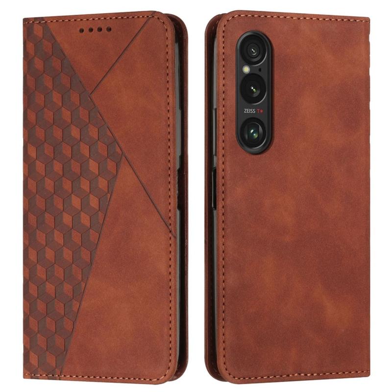 Funda de cartera con diseño de rombos y cierre magnético para Sony Xperia 1 VI