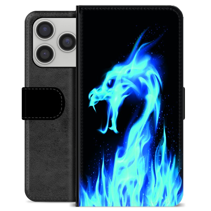 Funda Cartera Premium para iPhone 17 Pro - Dragón de Fuego Azul