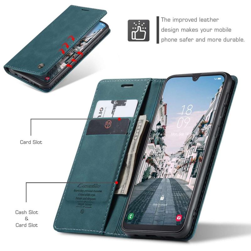- Estuche tipo billetera de la serie Caseme 013 para su preciado Samsung Galaxy A40