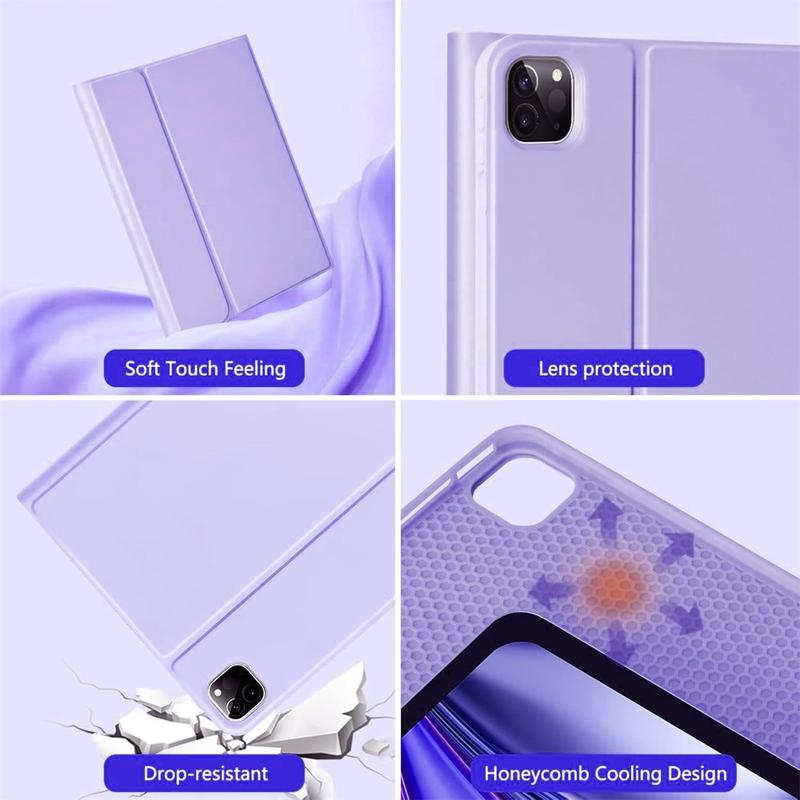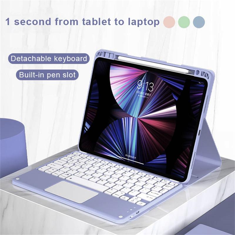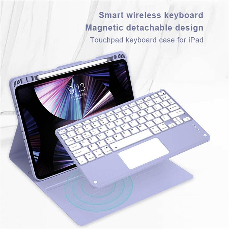 Mejora tu iPad Air 13 2026/2025/2024, iPad Pro 12.9 2022/2021/2020/2018 con la funda con teclado Bluetooth, un accesorio multifunción 2 en 1 que combina protección, productividad y estilo. Fabricada en poliuretano de primera calidad, esta elegante funda ofrece protección total contra arañazos, golpes y huellas dactilares, al tiempo que mantiene un aspecto profesional. El teclado Bluetooth se conecta de forma inalámbrica para una escritura fluida y con gran capacidad de respuesta, mientras que el panel táctil integrado admite el control multigestual para una navegación sin esfuerzo. El teclado retroiluminado permite escribir cómodamente incluso en entornos con poca luz. El soporte ajustable integrado ofrece un ángulo de visión ergonómico, por lo que es perfecto para escribir, transmitir o leer. Diseñada para los negocios, los viajes o el uso diario, esta funda con teclado transforma la tableta en una estación de trabajo portátil.