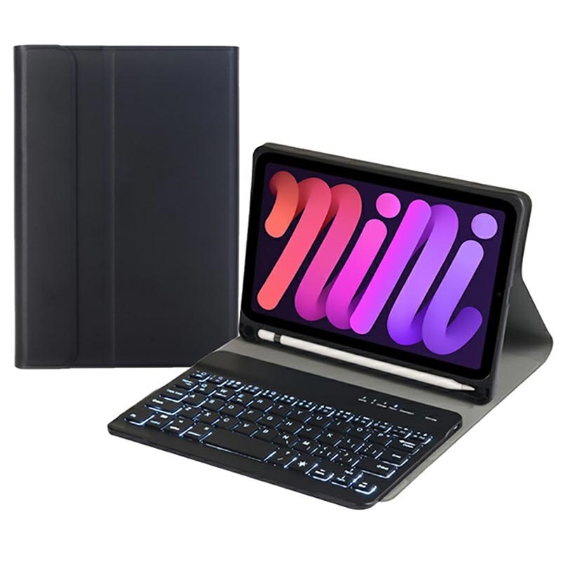 Funda con teclado Bluetooth iPad Mini (2021), iPad Mini (2024) con retroiluminación, panel táctil y soporte - Distribución de teclado US