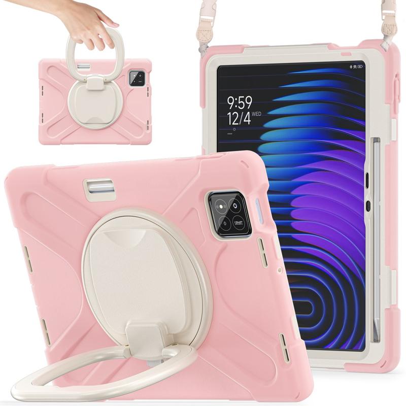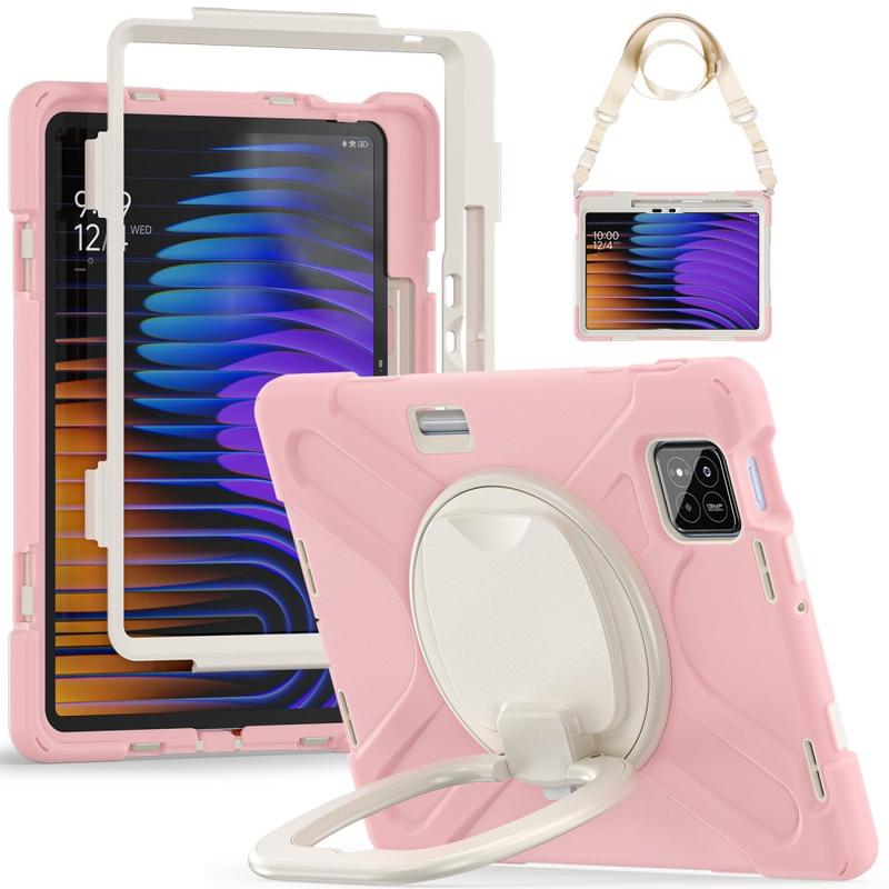 Funda con Correa de Mano Heavy Duty 360 para Xiaomi Pad 8/8 Pro - Rosa / Blanco