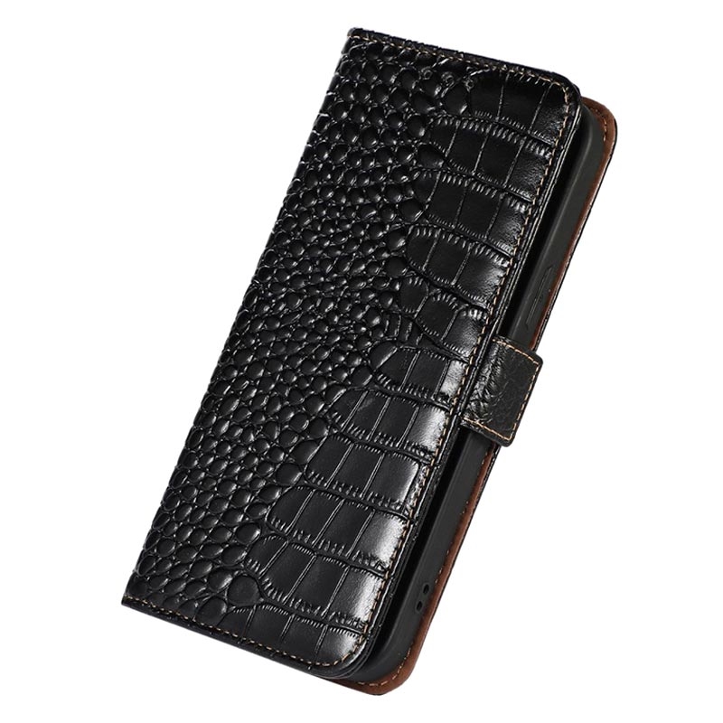 Funda Crocodile con RFID para Honor X8 - Estilo Cartera - Negro