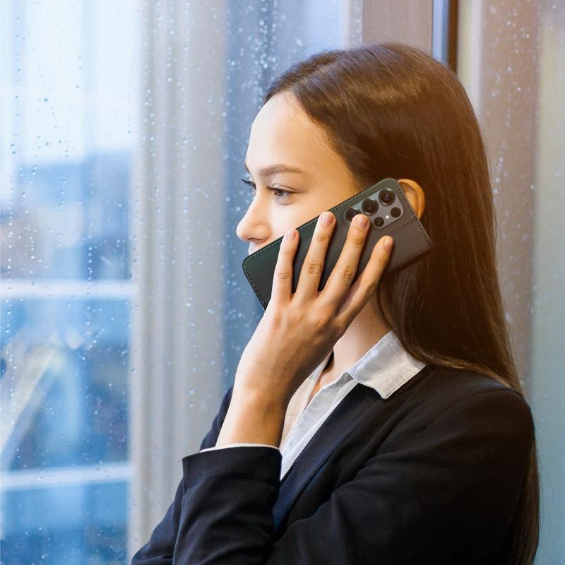 ¡Mejora la protección de tu preciado Samsung Galaxy S26 Ultra con esta funda de piel estilo cartera Dux Ducis Hivo! Equipado con algunas ranuras para tarjetas y un compartimento para efectivo, reemplazará efectivamente su billetera y protegerá la información de su tarjeta de crédito contra robos. Hecho de cuero genuino de alta calidad y TPU, seguramente llamará la atención.