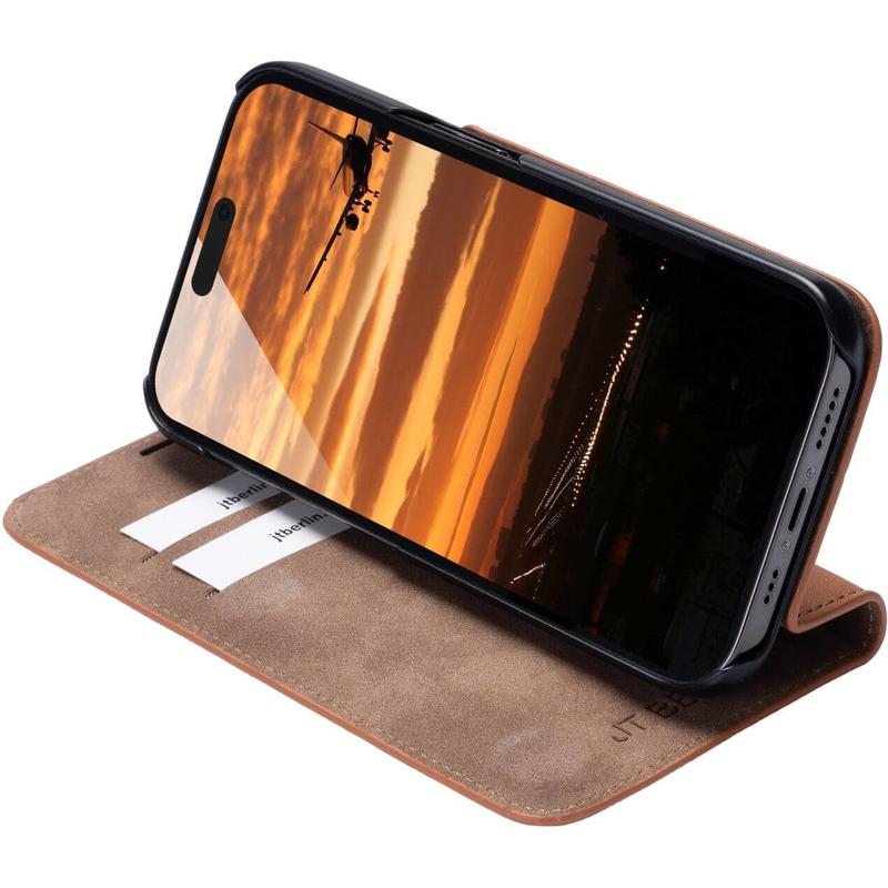 Funda de Cuero con Tapa JT Berlin BookCase Tegel para iPhone 16 Pro Max - Coñac