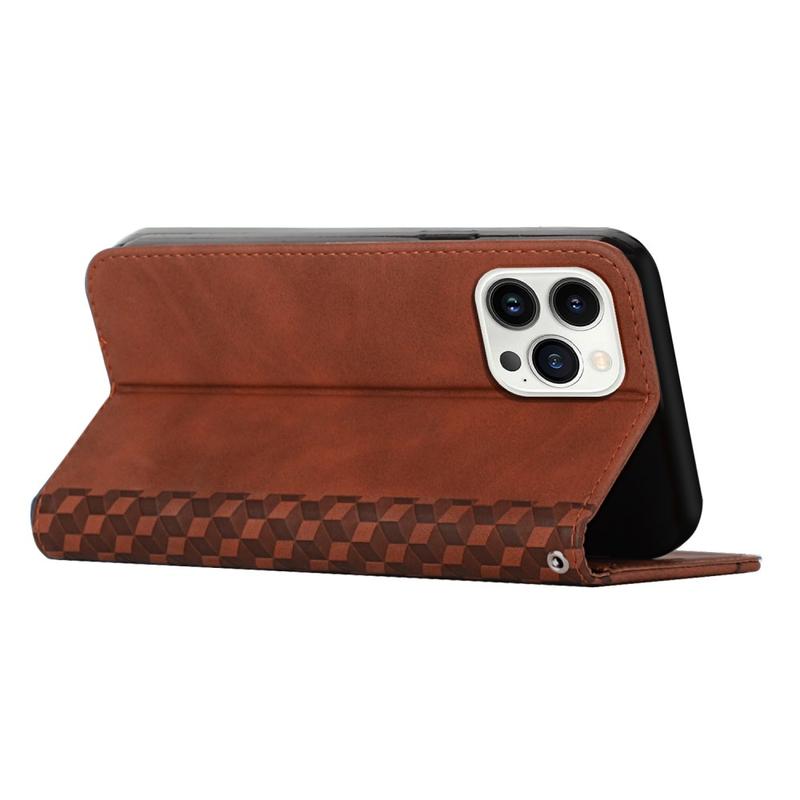Protege tu iPhone 16 Pro Max con estilo gracias a esta funda de poliuretano de primera calidad con diseño de rombos, diseñada para ofrecer durabilidad y comodidad. Con un acabado elegante, esta funda está equipada con un cierre magnético para mantener tu teléfono seguro a la vez que ofrece un acceso rápido. La función de soporte incorporada le permite disfrutar de una visualización manos libres, por lo que es ideal para streaming, videollamadas o navegación. El elegante diseño de cuero PU no sólo añade sofisticación, sino que también proporciona una protección fiable contra arañazos, golpes y caídas, asegurando que su dispositivo se mantenga en perfectas condiciones.