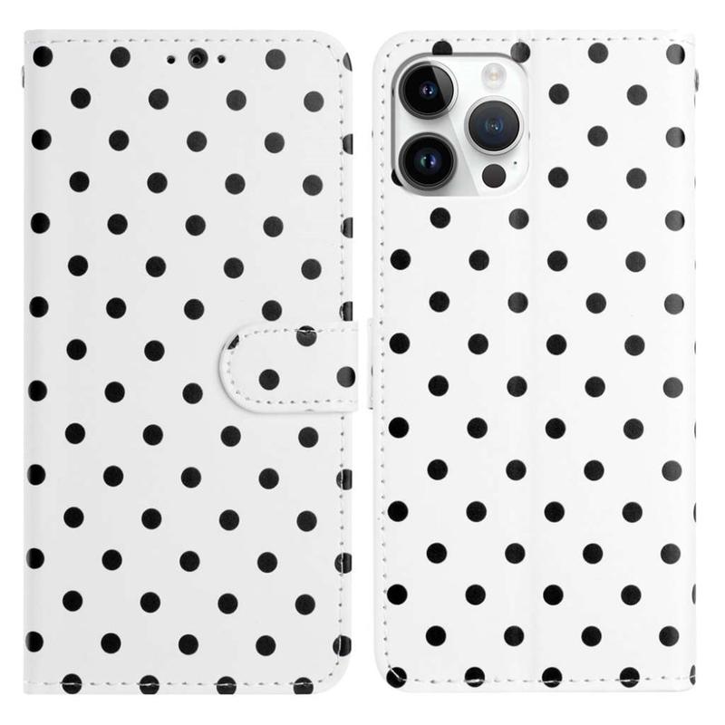 Funda de cartera iPhone 16 Pro Max con estampado de lunares - Blanca
