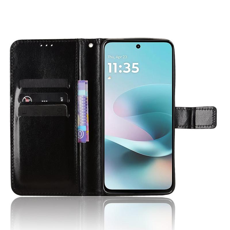 Dale a tu nuevo Motorola Moto G67 Power, Moto G57 Power, Moto G57 un aspecto refinado y vintage a la vez que sustituyes tu cartera de todos los días. El exterior de poliuretano con textura Crazy Horse se combina con una carcasa de TPU que absorbe los golpes para protegerla de caídas y arañazos, mientras que los bolsillos inteligentes mantienen organizadas las tarjetas y el dinero.