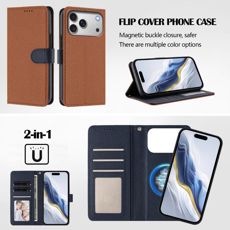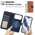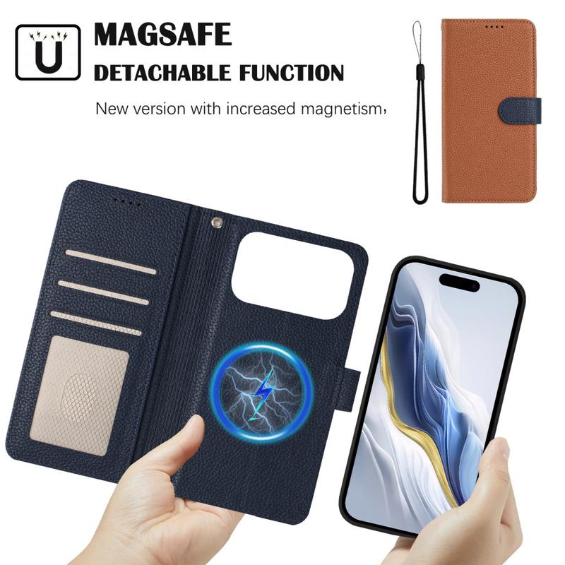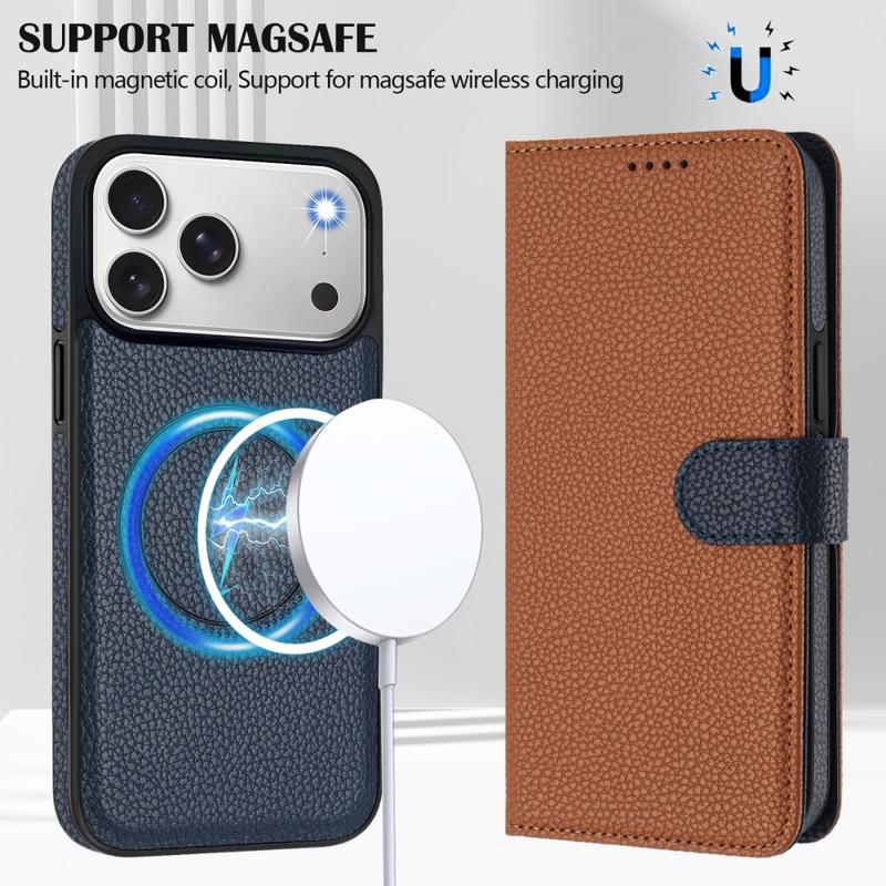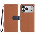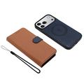 Funda de cartera extraíble para iPhone 17 Pro con MagSafe, protección RFID y correa de mano - Marrón / Azul