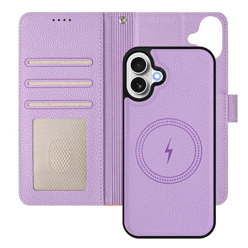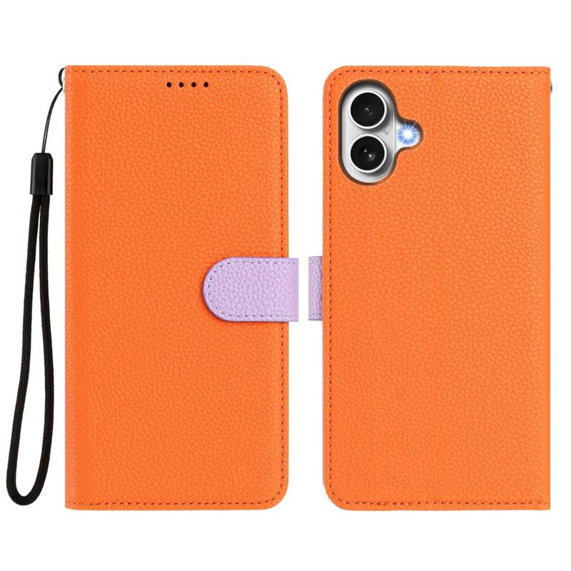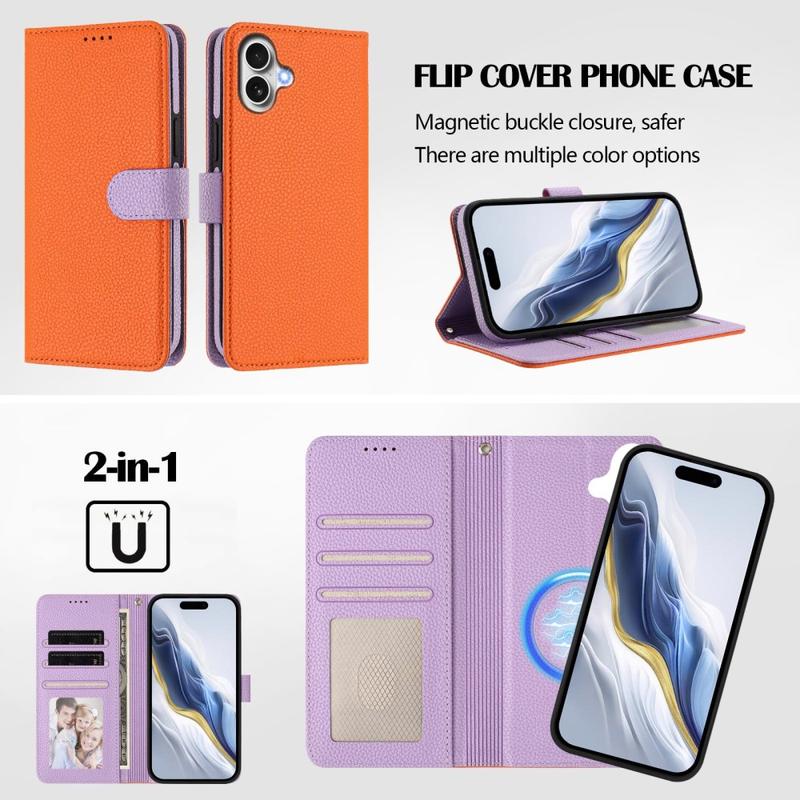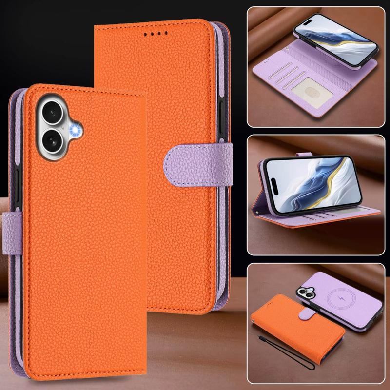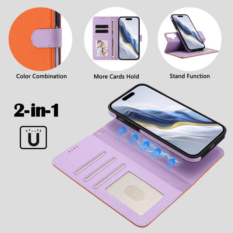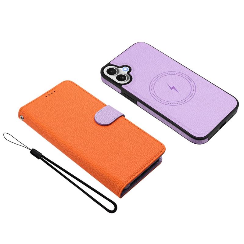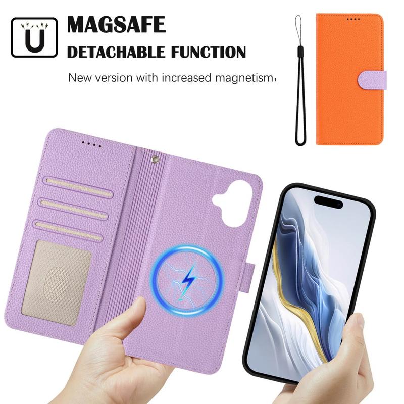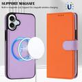 Funda de cartera extraíble para iPhone 17 con MagSafe, protección RFID y correa de mano - Naranja / Morado