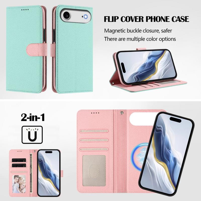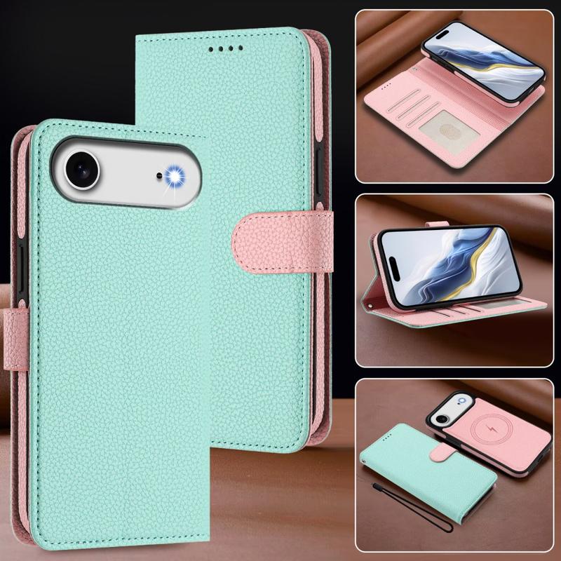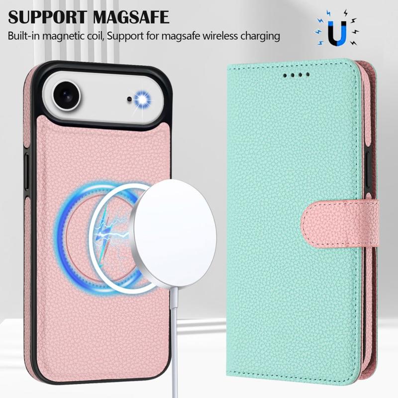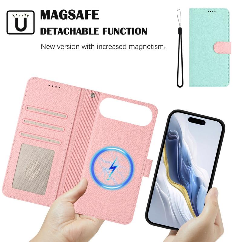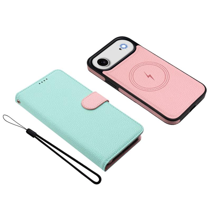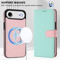 Funda de cartera extraíble para iPhone Air con MagSafe, protección RFID y correa de mano - Menta / Rosa