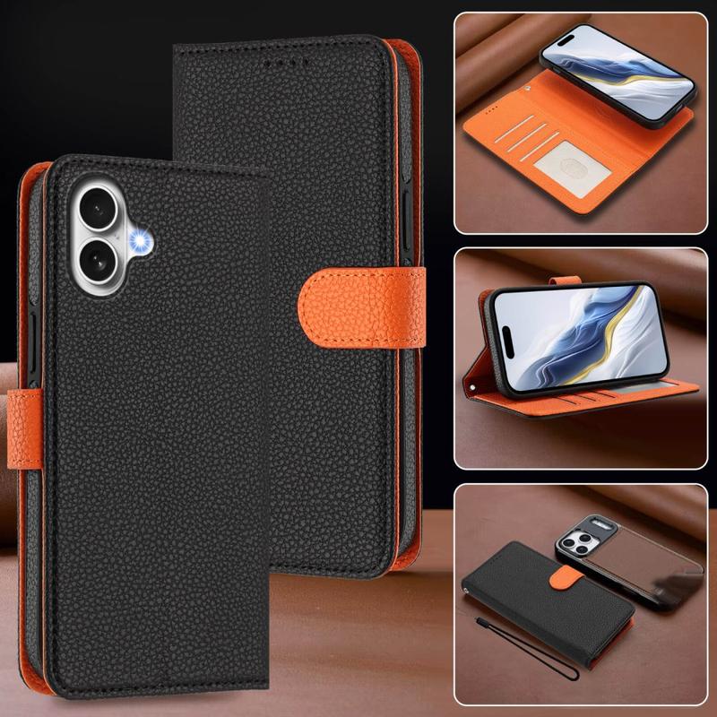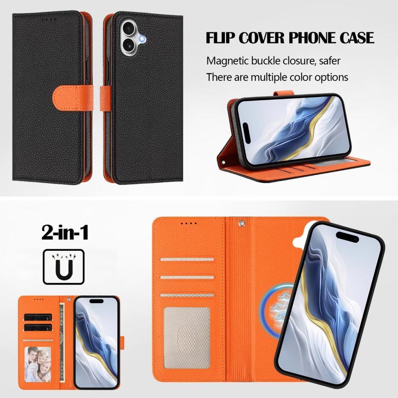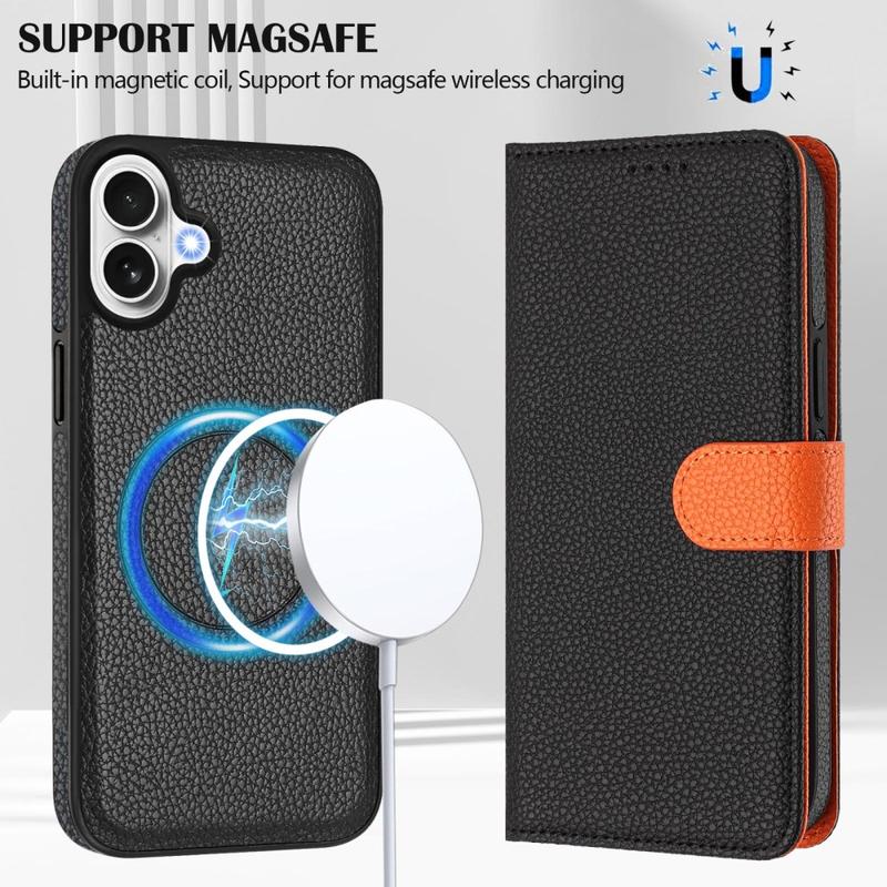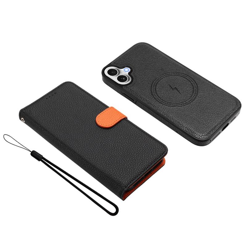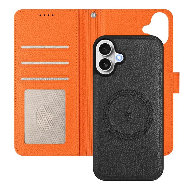 Funda de cartera desmontable para iPhone 17 con MagSafe, protección RFID y correa de mano - Negro / Naranja