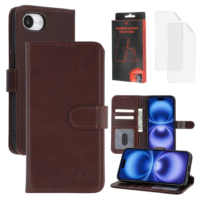 • MyTPhone CardMate Funda Cartera de Piel Premium para iPhone 17e - Con Función de Soporte, Tarjetero, Soporte para Carga Inalámbrica, 2x Protector de Pantalla