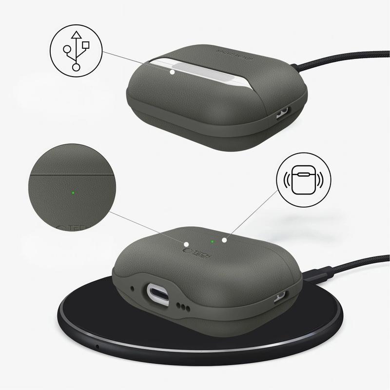 Funda de piel AirPods Pro 3 Tech-Protect NaturalFit - Verde oliva