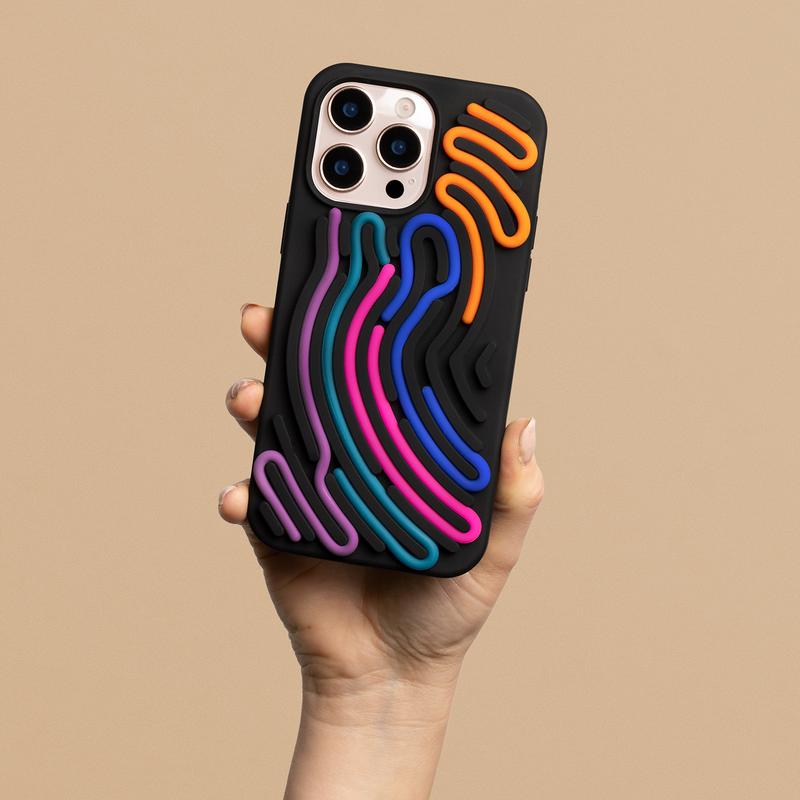 • Funda DIY Snake para iPhone 11: funda de silicona personalizable con cordones de colores para un diseño sensorial que invita a jugar con las manos.