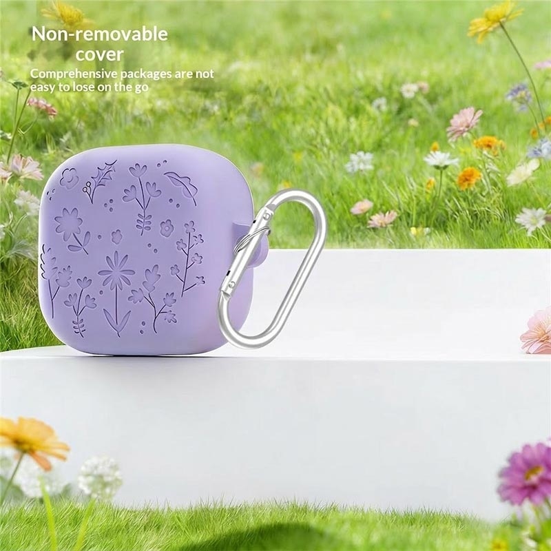 • Funda de silicona con grabado floral, lápices de limpieza y mosquetón para Samsung Galaxy Buds4 y Galaxy Buds4 Pro