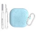 Funda de silicona con grabado floral y lápices de limpieza para Samsung Galaxy Buds4/Buds4 Pro - Azul