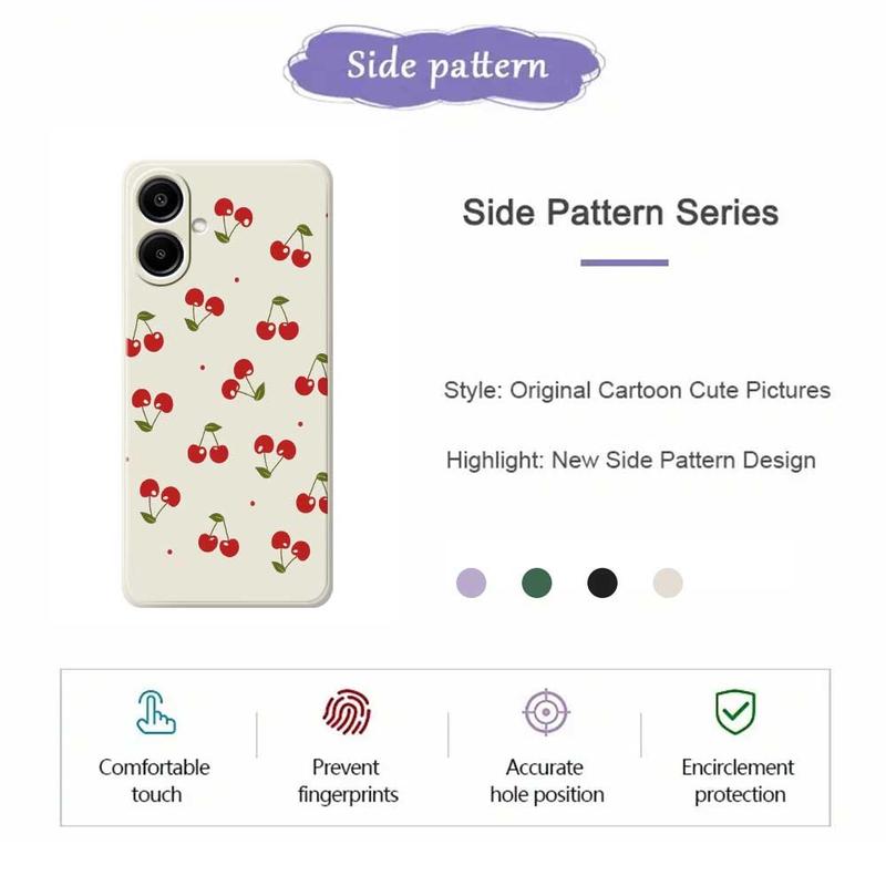 • Funda de TPU con estampado de cerezas para Samsung Galaxy A07 4G - Textura de silicona líquida suave al tacto con protector de cámara elevado