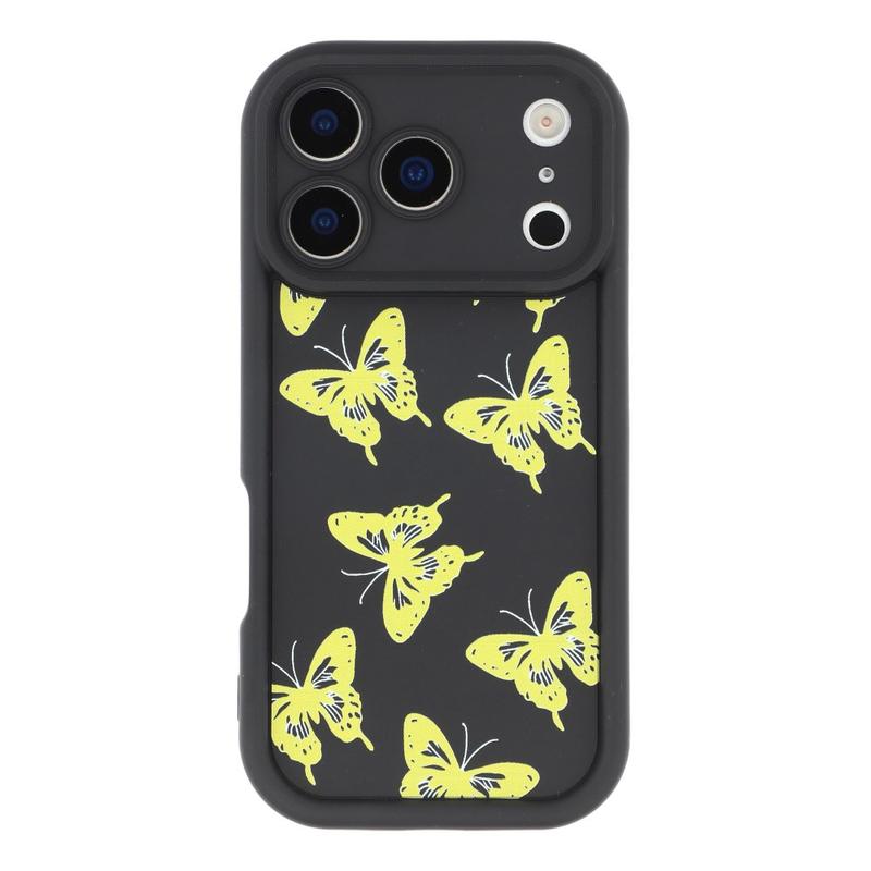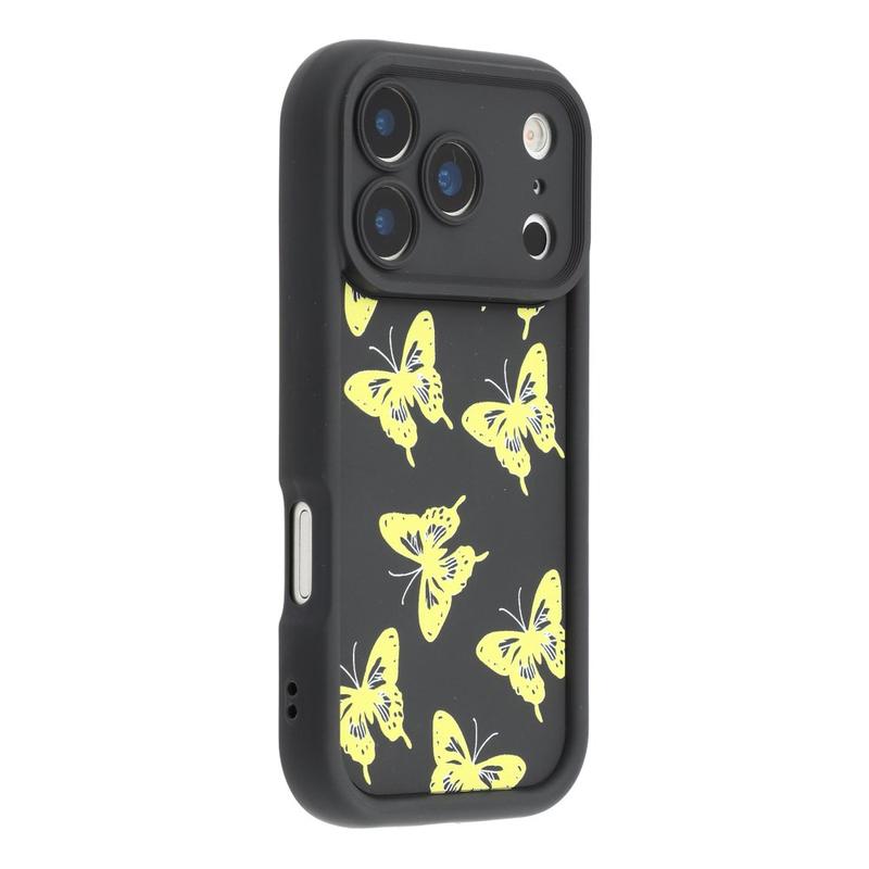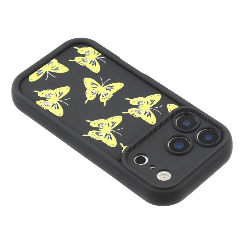 Funda de TPU con estampado de mariposas para iPhone 17 Pro Max - Amarillo / Negro