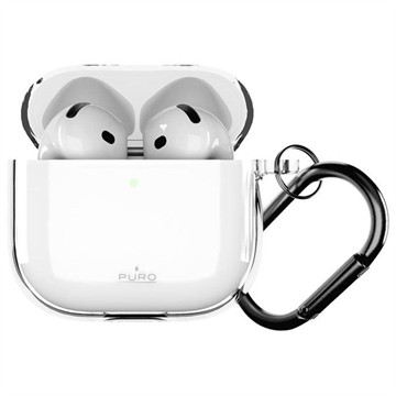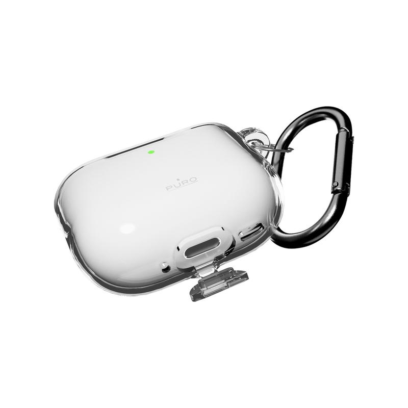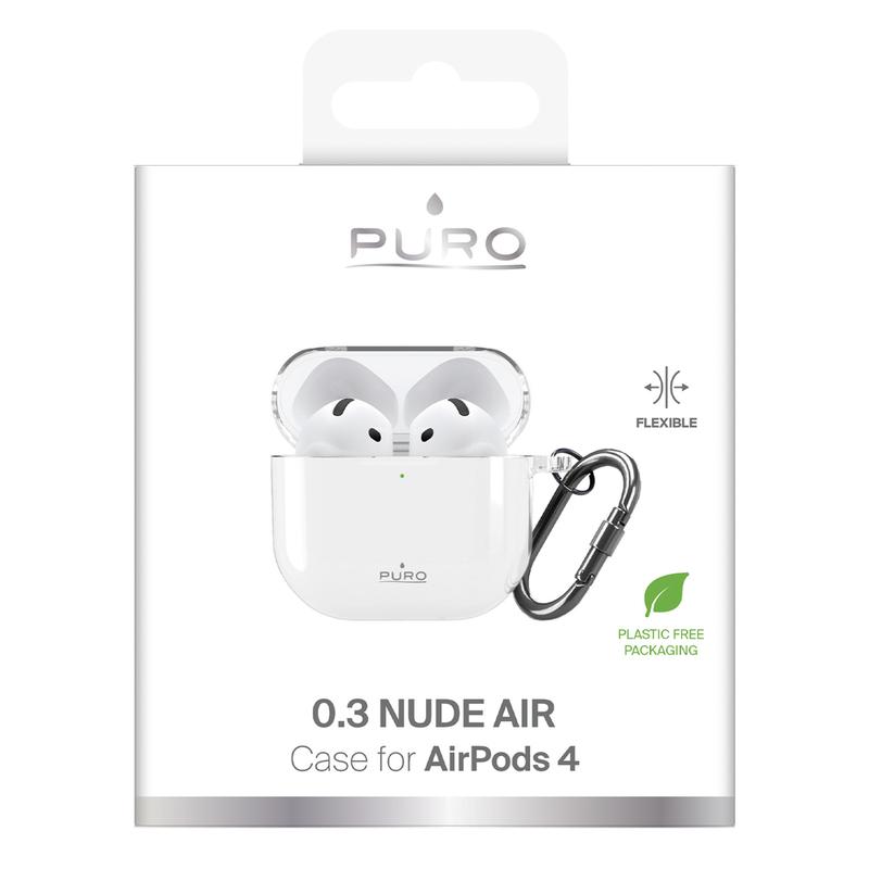 • Funda Puro 0.3 Nude de TPU para AirPods 4: funda de TPU transparente ultrafina con mosquetón metálico