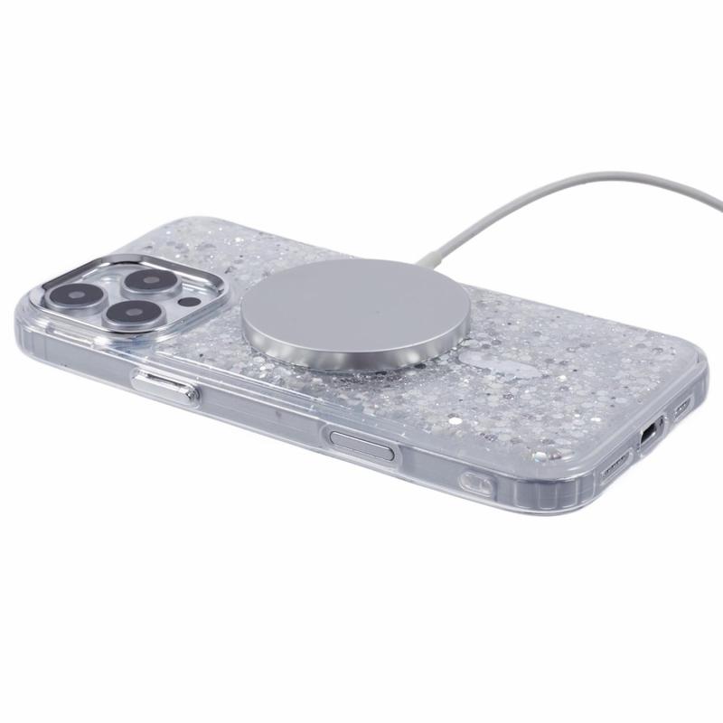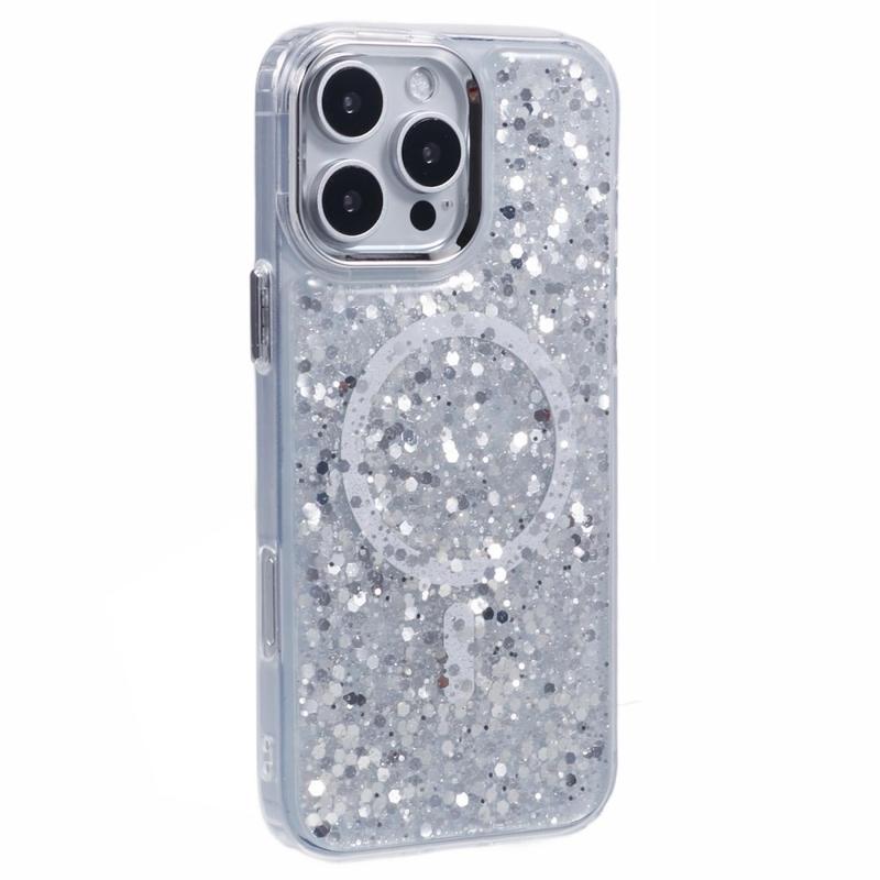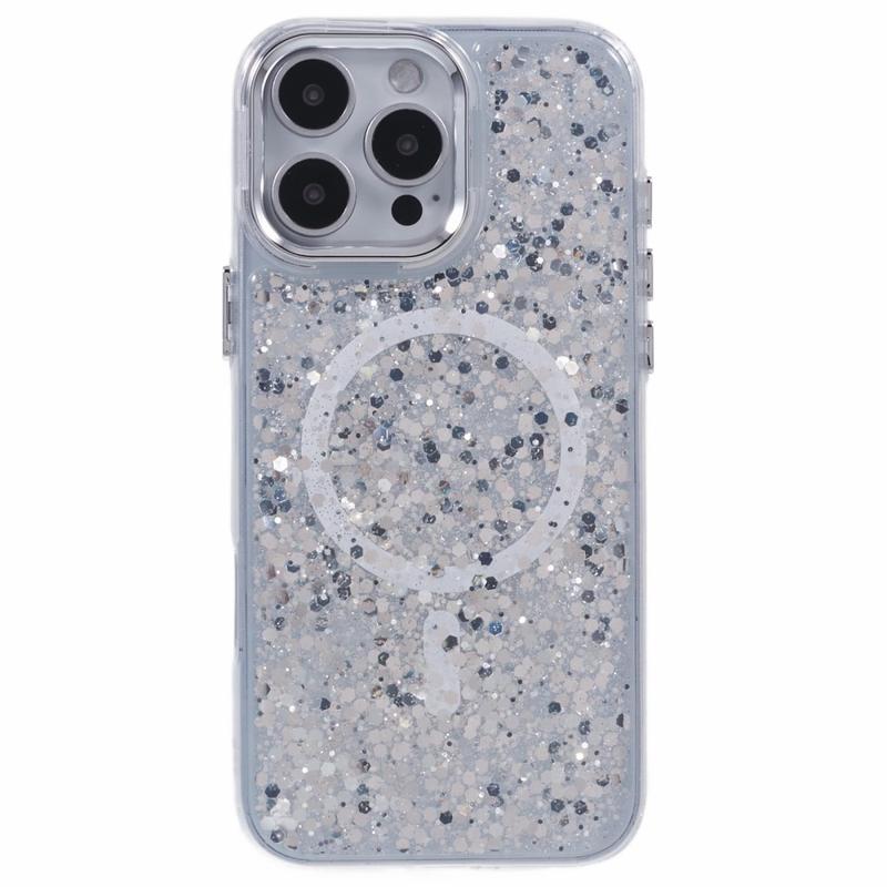 Funda epoxi de lentejuelas con purpurina compatible con MagSafe para iPhone 16 Pro - Blanco