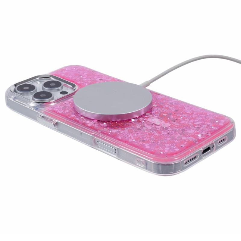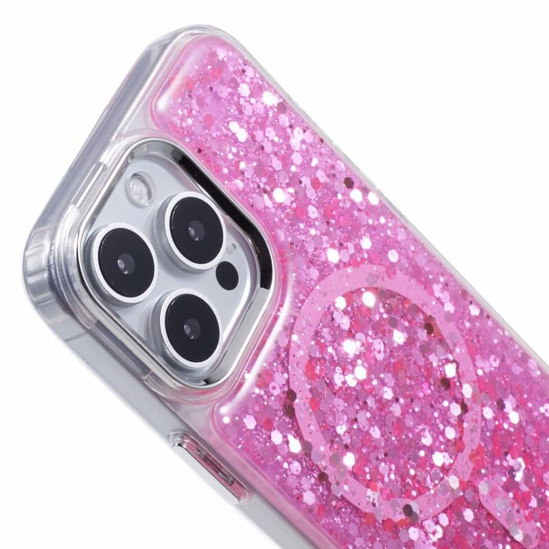 Funda epoxi de lentejuelas con purpurina compatible con MagSafe para iPhone 16 Pro - Rosa Fuerte