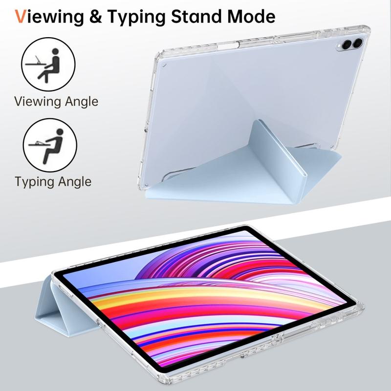- Soporte plegable de origami versátil: cuenta con una cubierta frontal de tres pliegues de estilo origami, que permite múltiples ángulos de visualización y escritura para adaptarse a sus necesidades, ya sea que esté viendo películas, escribiendo o navegando.
