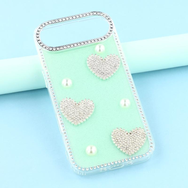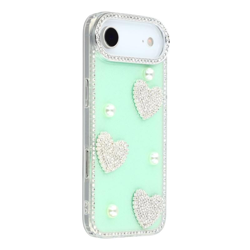Esta funda para iPhone Air combina una protección fiable para el día a día con un estilo glamuroso. Con brillantes diamantes de imitación alrededor de los bordes y adornos de corazón de perlas brillantes en la parte posterior, convierte tu iPhone Air en un accesorio de moda mientras lo mantiene a salvo de arañazos y golpes.