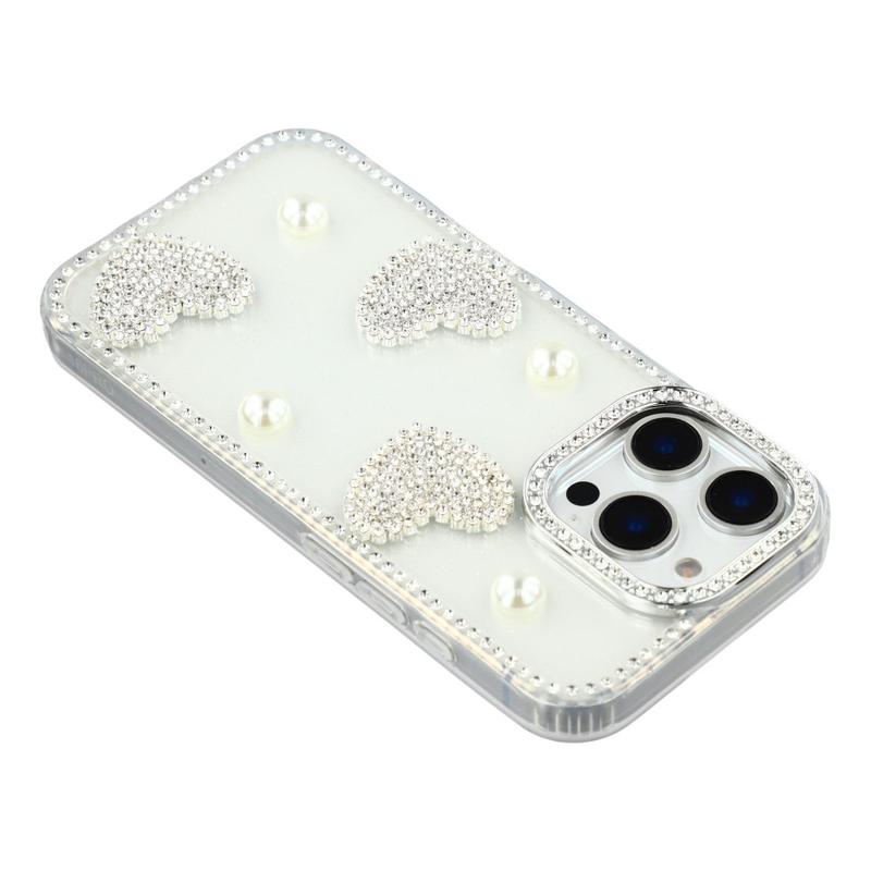 Esta funda para iPhone 16 Pro Max combina una protección fiable para el día a día con un estilo glamuroso. Con brillantes diamantes de imitación alrededor de los bordes y adornos de corazón de perlas brillantes en la parte posterior, convierte tu iPhone 16 Pro Max en un accesorio de moda mientras lo mantiene a salvo de arañazos y golpes.