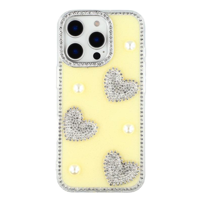 Funda híbrida Amor brillante y perla para iPhone 16 Pro - Amarillo