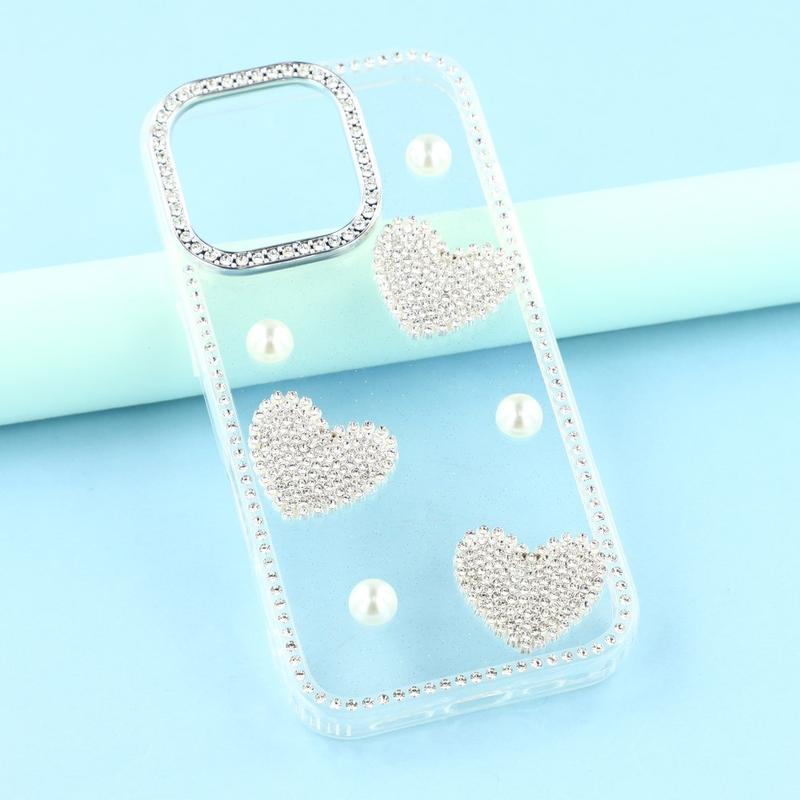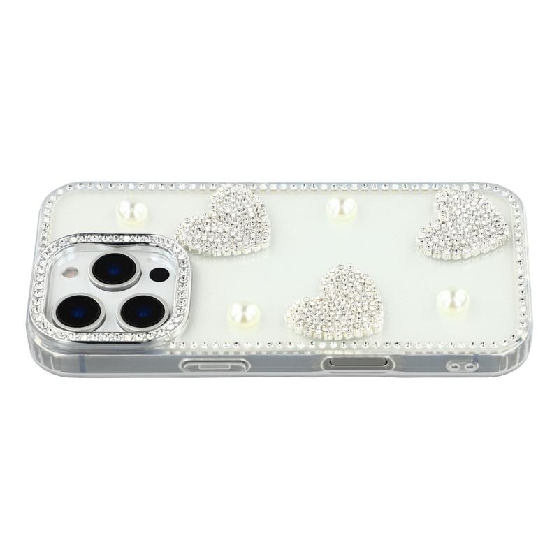 Esta funda para iPhone 16 Pro combina una protección fiable para el día a día con un estilo glamuroso. Con brillantes diamantes de imitación alrededor de los bordes y adornos de corazón de perlas brillantes en la parte posterior, convierte tu iPhone 16 Pro en un accesorio de moda mientras lo mantiene a salvo de arañazos y golpes.