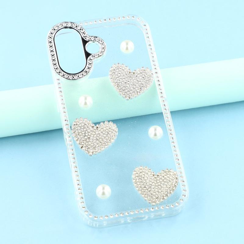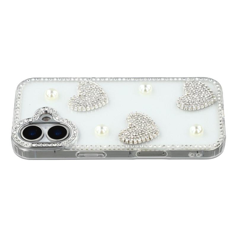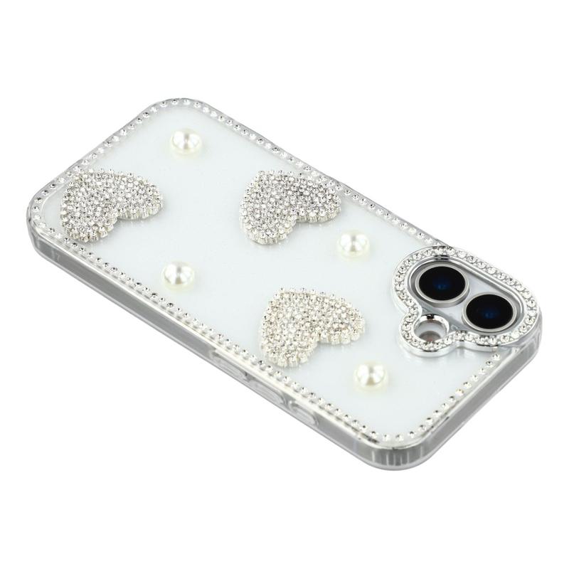 Esta funda para iPhone 16 combina una protección fiable para el día a día con un estilo glamuroso. Con brillantes diamantes de imitación alrededor de los bordes y adornos de corazón de perlas brillantes en la parte posterior, convierte tu iPhone 16 en un accesorio de moda mientras lo mantiene a salvo de arañazos y golpes.