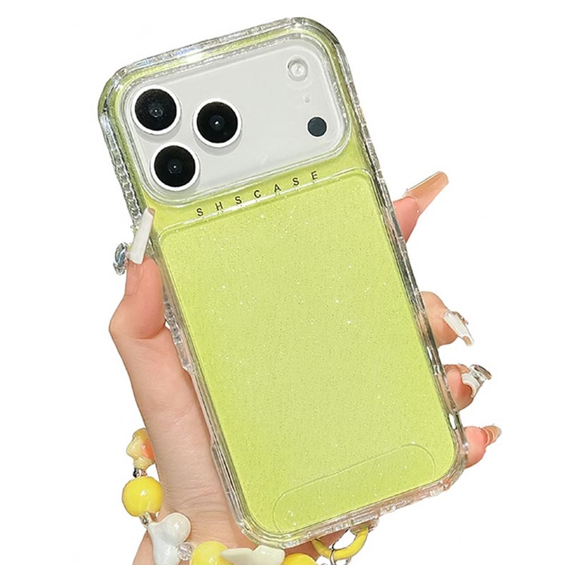 Funda híbrida antigolpes con purpurina y correa para iPhone 17 Pro Max - Amarillo
